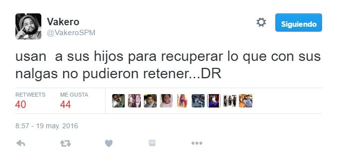 “Usan a sus hijos para recuperar lo que con sus n… no pudieron retener…DR “, indicó desde @vakerospm.